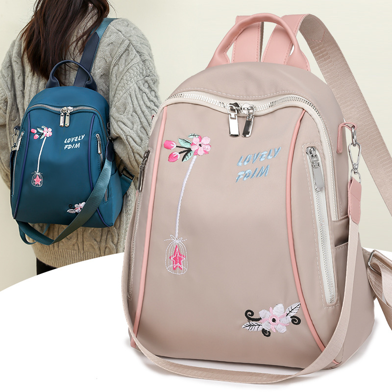 リュックサックレディース2024新作高級感大容量刺繍旅行リュックサックファッション百合ナイロン防犯カバン