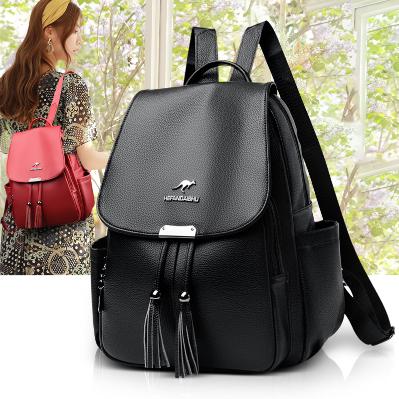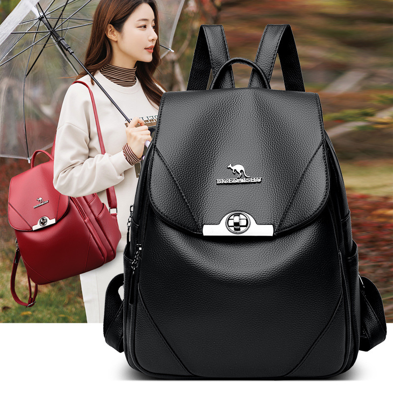 リュックサックの女性2023新型韓国風ファッション百合軟皮カンガルーのリュックサックは大容量の女性旅行カバンを多く使います。