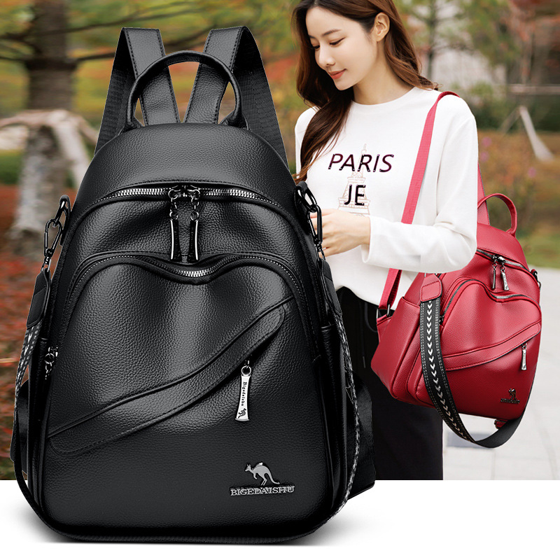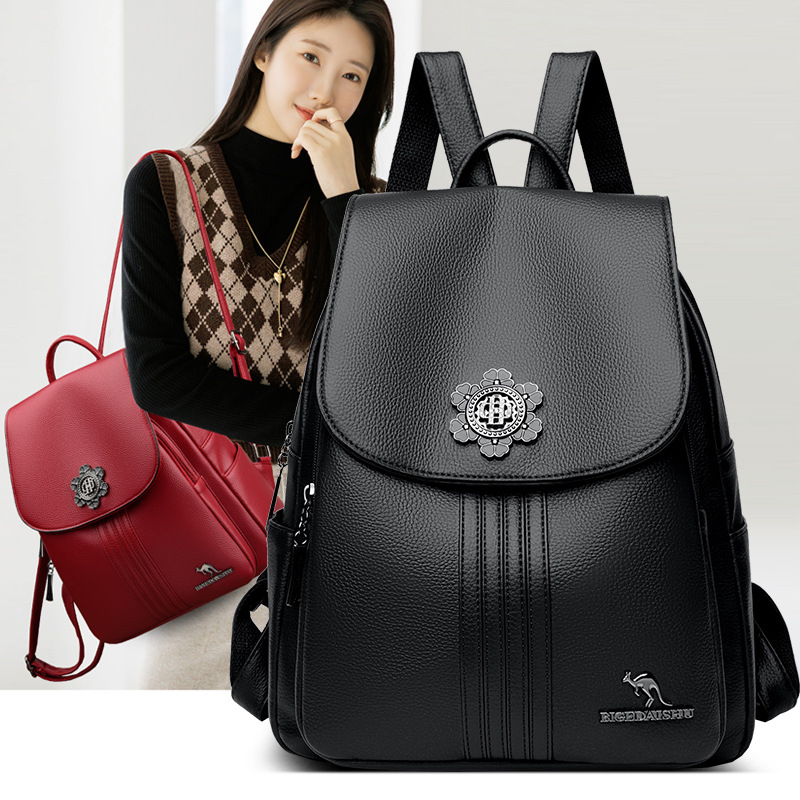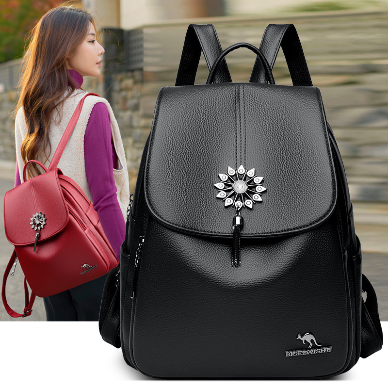2023韓国版新型百合大容量ソフトレザーアウトドア旅行リュックサックカジュアルリュックサック女性カジュアル学生カバン