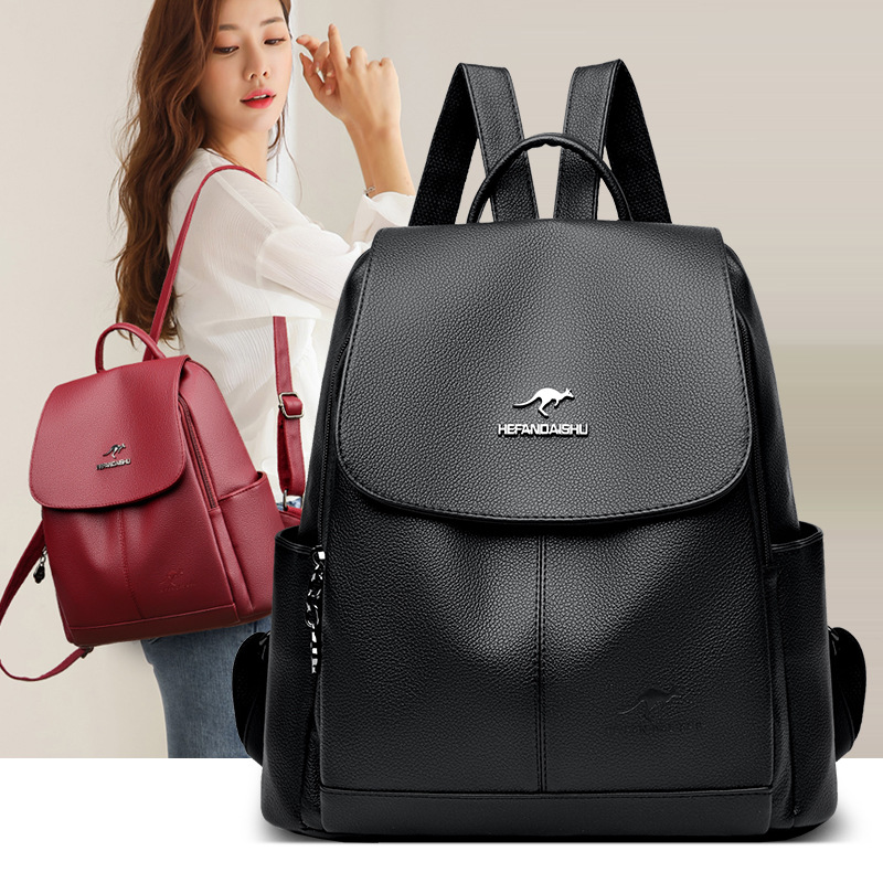 肩のリュックサックの女性の2023新型のファッションは柔らかい皮の大容量の女性のカンガルーのリュックサックの軽い旅行のカバンに入ります。