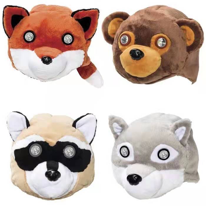 子供漫画人形ライト付き帽子かわいい目フェルト帽子動物異形冬ベルベット短毛帽子