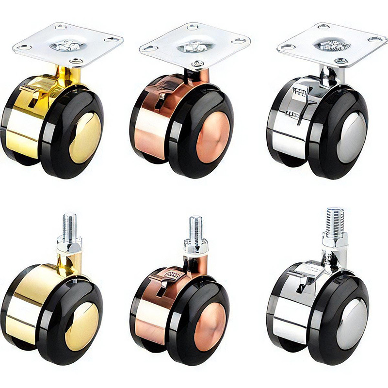 ローズゴールドオフィスチェア1.5インチ亜鉛合金ステアリングゴールド家具合金シルク歯ブレーキミュート足