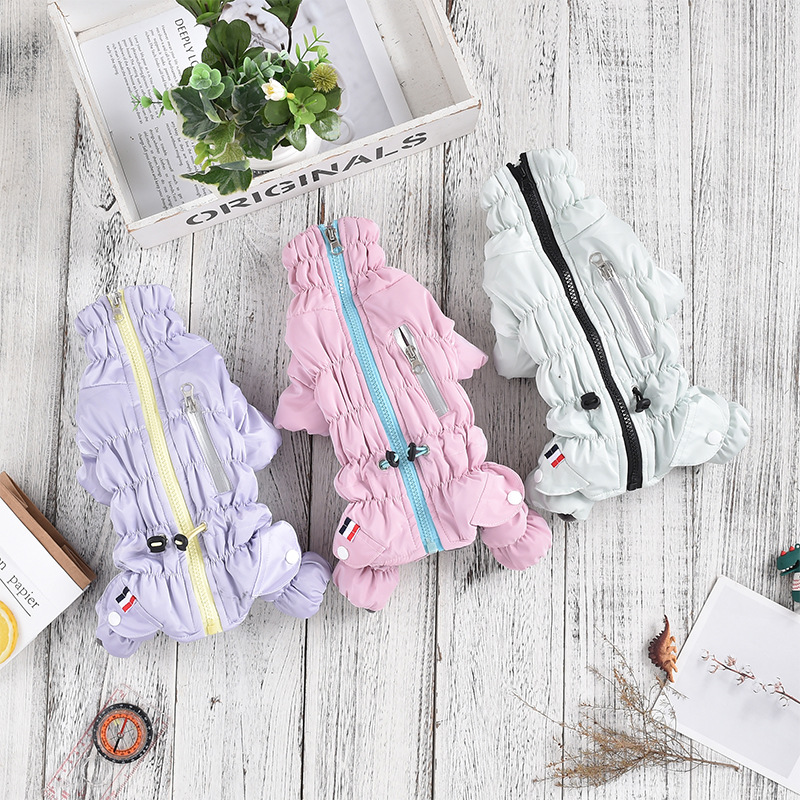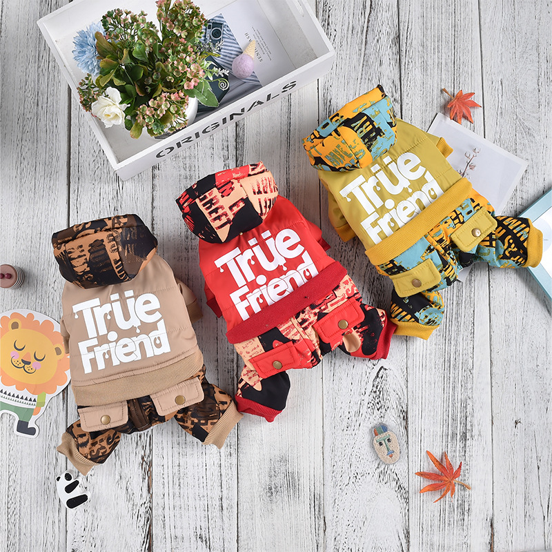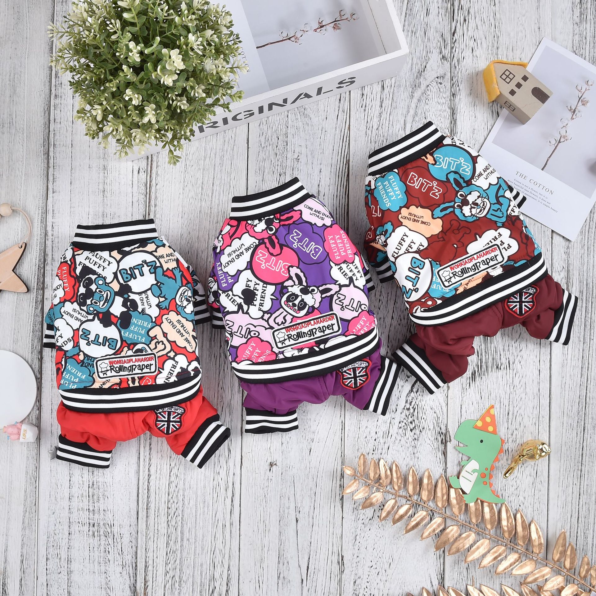 秋冬保温ペット服厚手キャラクターカラープリント防風四脚ズボン中小型犬防風ベルベット綿服