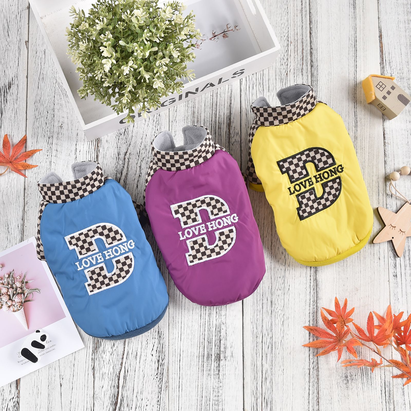新商品の犬の法莱絨華夫格は四足のバックパンツをつなぎ合わせて秋冬の保温中小型ペット服を厚くします。