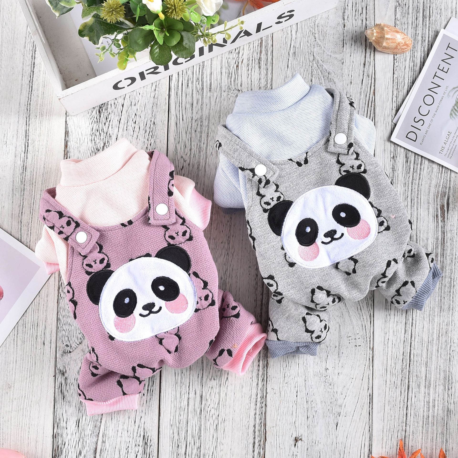 2023秋冬の新型厚手の犬服四足のパンダの背もたれのズボンの形の中で小型犬の保温ペットの服