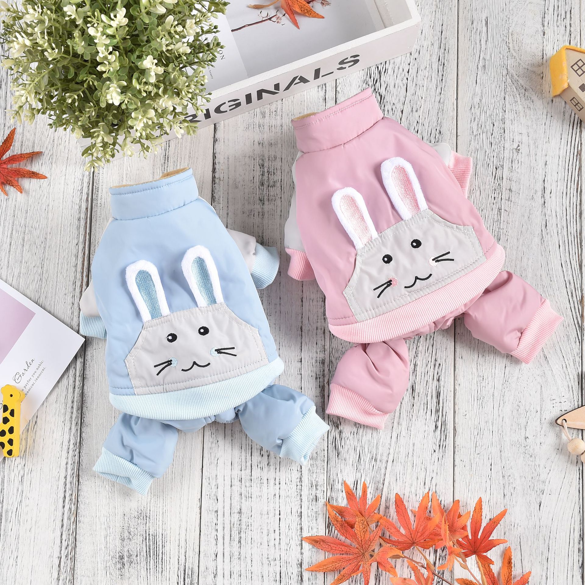 新型秋冬服テディ貴賓犬四足かわいいウサギ風衣博美比熊犬保温ペット服