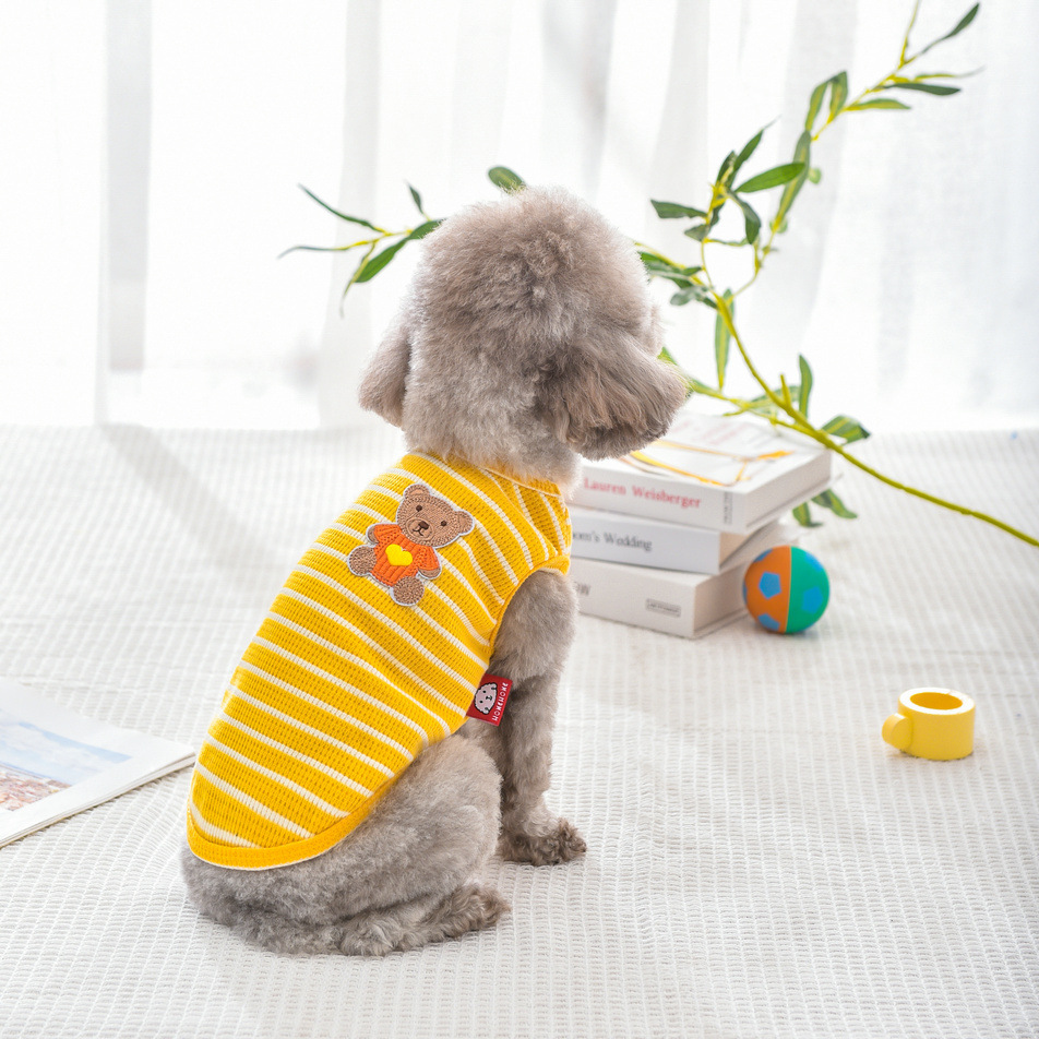 メッシュのストライプの熊のベストのペットの服の犬のベストの小型犬の春と秋の夏の薄い金は熊のテディの用品より大きいです。