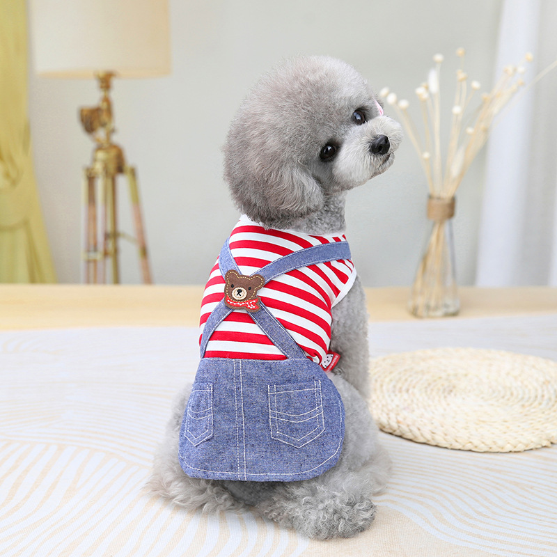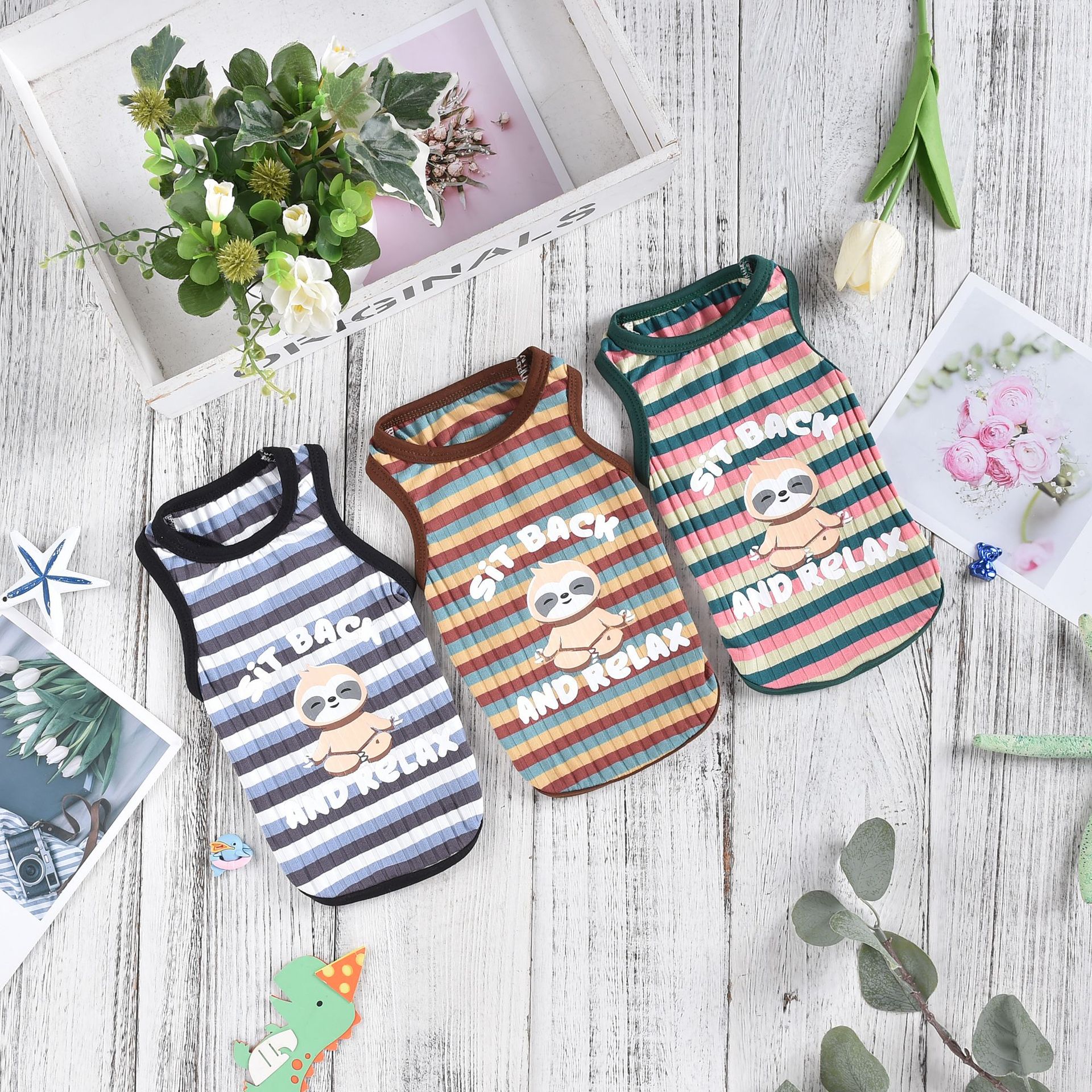 春夏の薄いストライプのベストの犬の服のアニメはかわいいです。