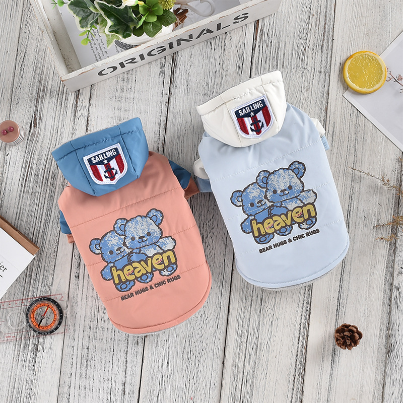 赤赤ペット新製品クロスボーダー防風防水楽しい熊両足綿服漫画テディ雪納瑞比熊服