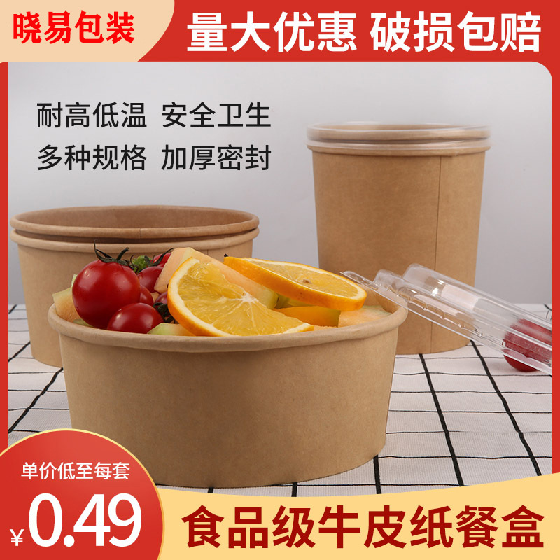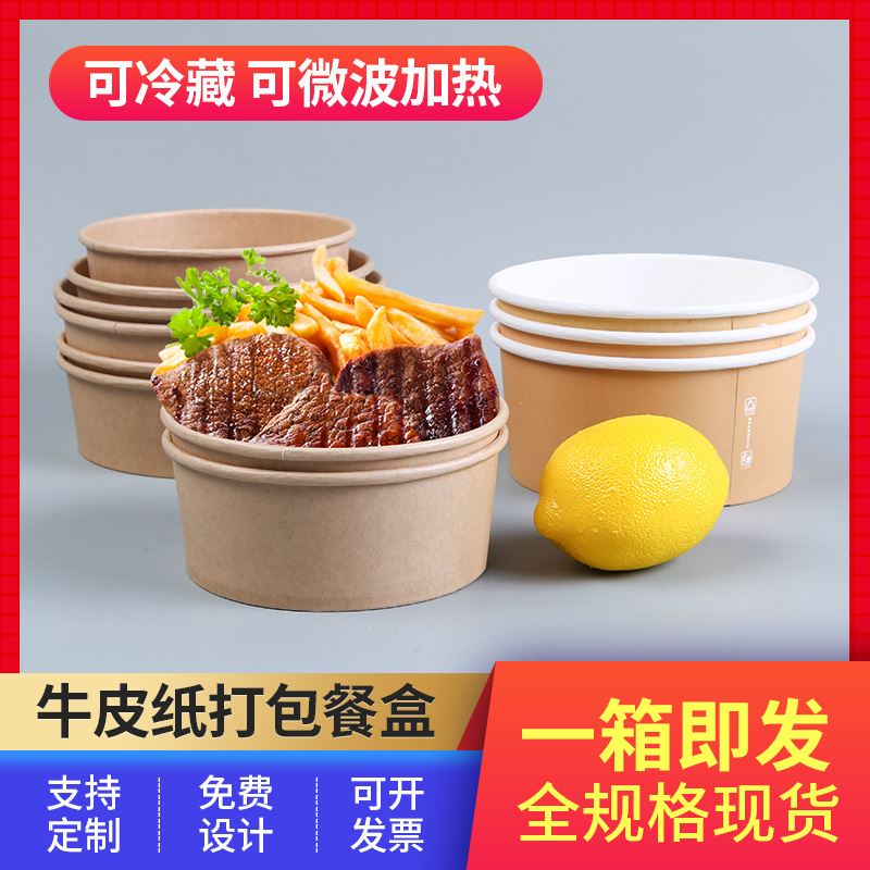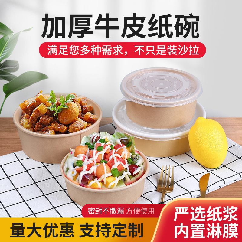 使い捨てのクラフト紙の碗は箱のサラダの碗を包んで厚く売ります。