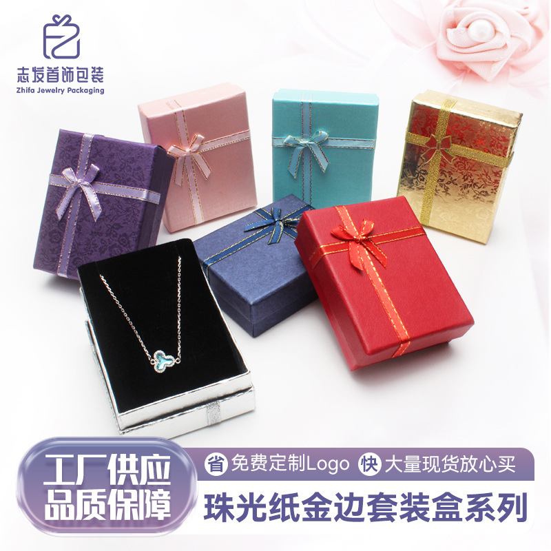 アクセサリーギフトボックスセット真珠光沢紙色箱金辺アクセサリー箱ネックレス長方形ジュエリー包装箱セット