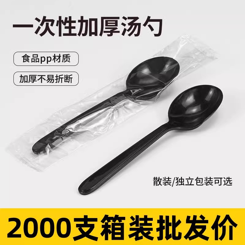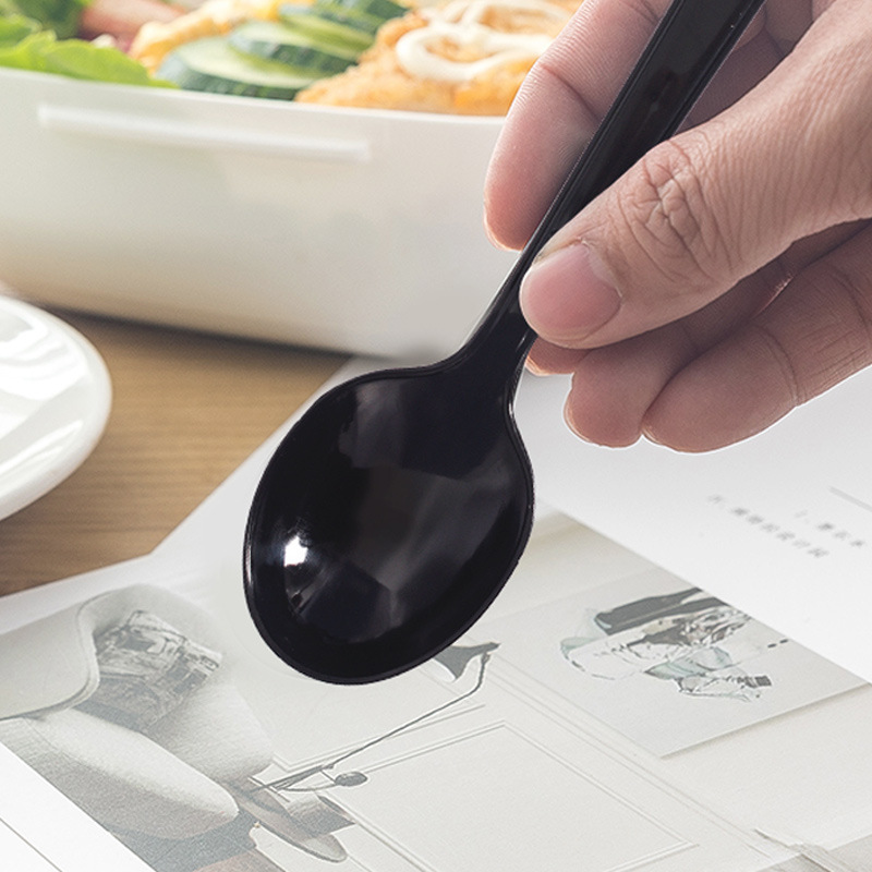 使い捨て厚手スプーンプラスチック長柄黒スプーンデザートケーキケンタッキースプーン個別包装食器