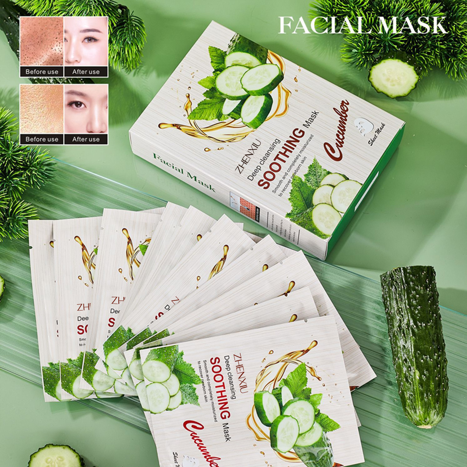 ZHENXIU キュウリマスク水分補給と保湿バランス水と油穏やかな保湿スキンマスククロスボーダー外国貿易カスタマイズ