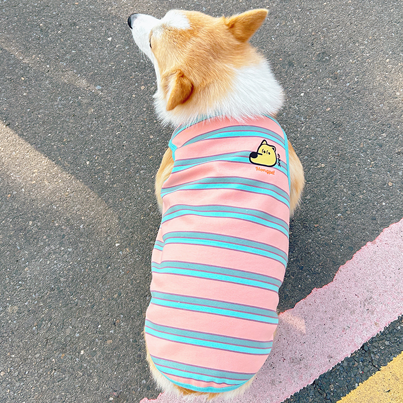 コーギー柴犬テディビション犬服ストライプペット四本足服春秋中型犬の抜け毛防止と汚れ防止