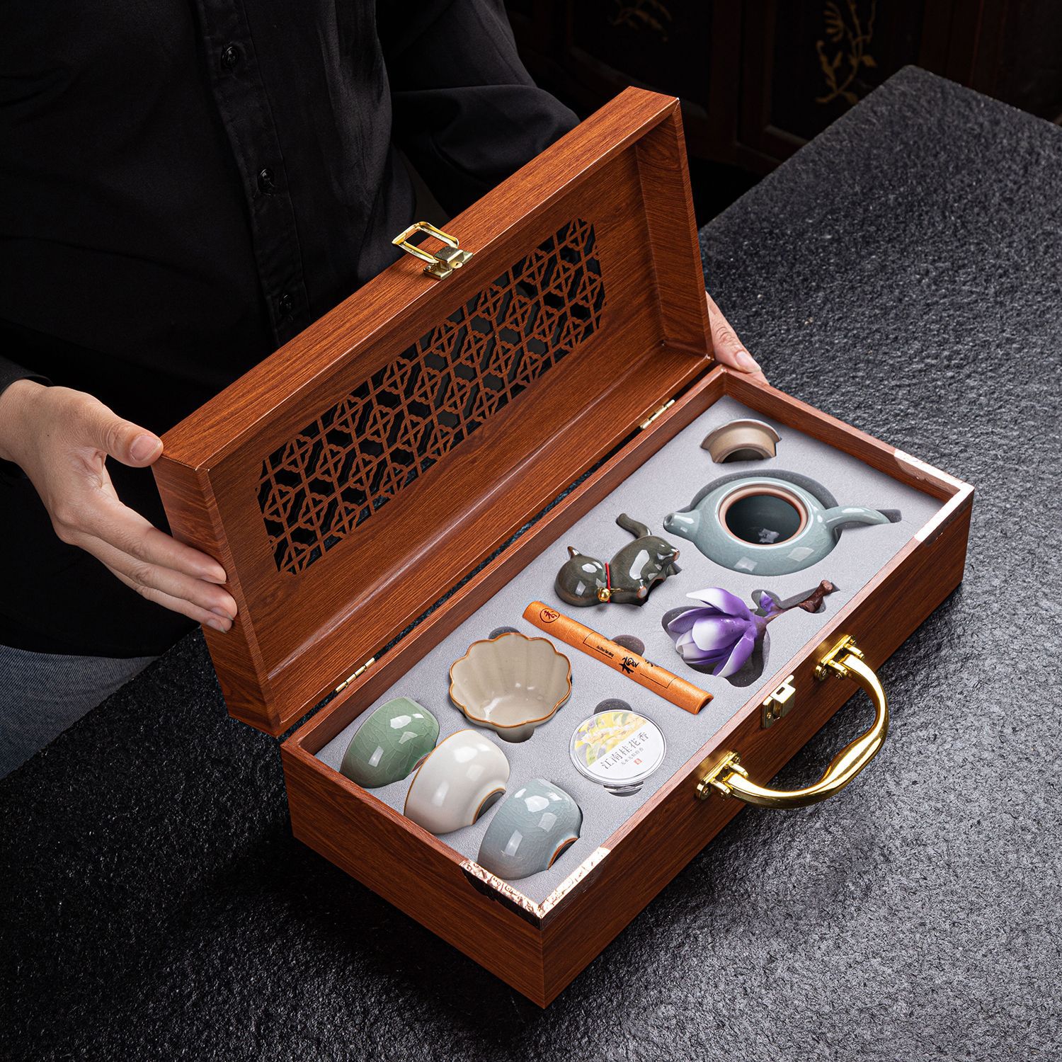 レトロ汝窯茶器、香セット、ギフトボックス、会社記念日イベント、実用的なギフト、高級記念品ロゴ