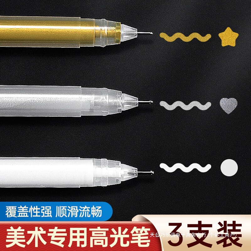 アートハイライトホワイトペンホワイトハイライトペイントペン防水速乾ゴールドシルバーカラーフックラインペン蛍光ペン