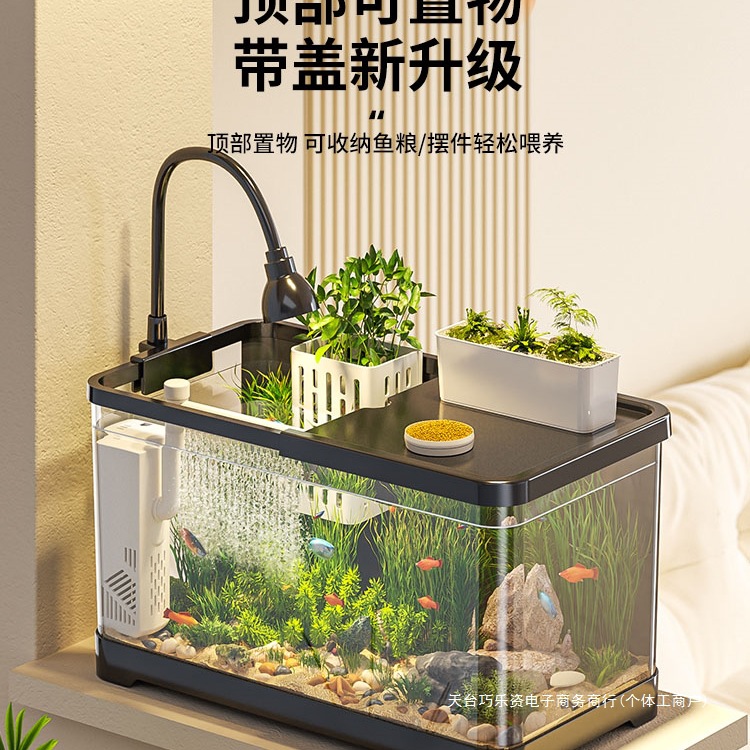 水槽小さなリビングルーム 2025 新しい造園生態水槽フィルター酸素発生器オールインワン金魚底フィルターシステムコンプリートセット