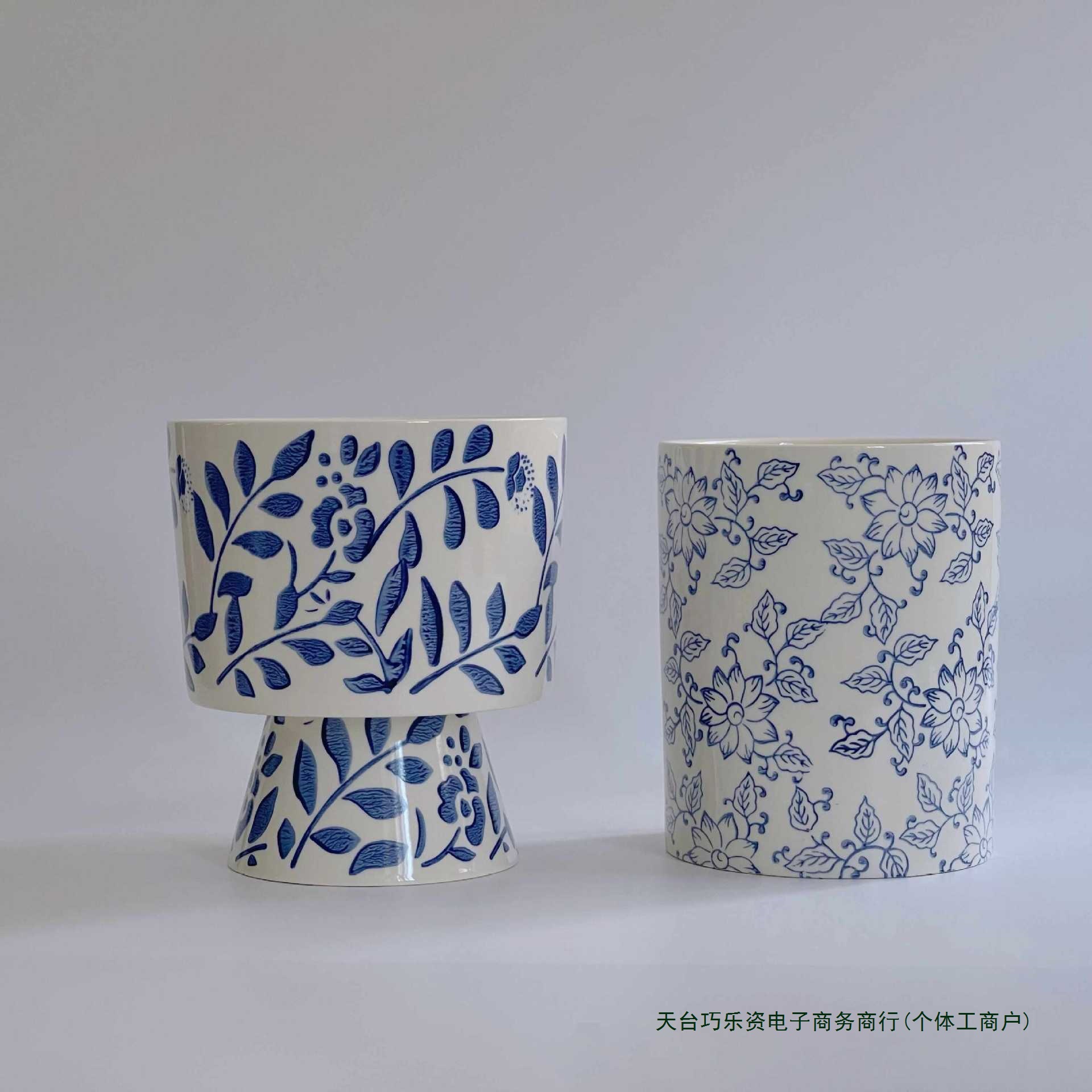 青と白の磁器模様胡蝶蘭セラミック植木鉢中国風屋内レトロ装飾磁器緑の植物と花のユニバーサルポット