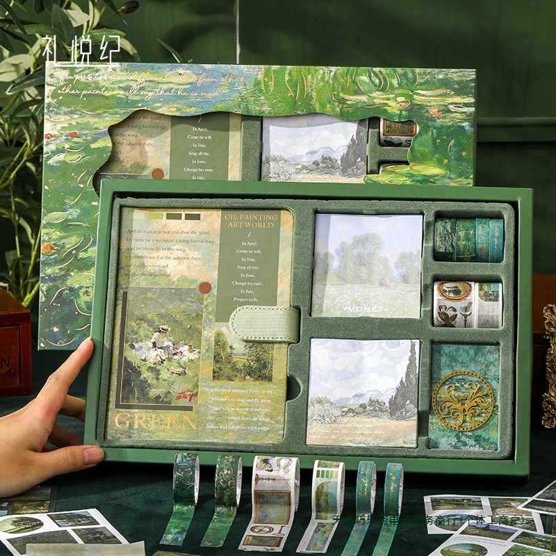 | 油絵ハンドブックセット ギフトボックス 高価値ノート シンプルインス 学生ハンドブック 文学方眼日記 女性用