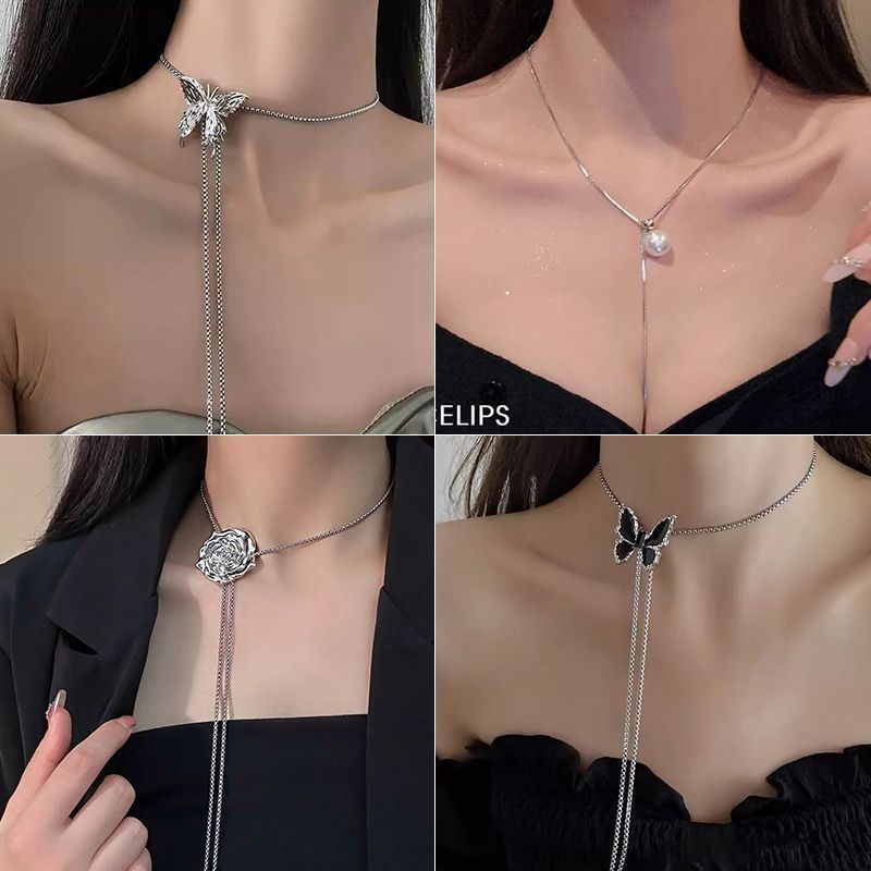 首鎖女流蘇2023真珠爆金ピンク新鎖骨鎖蝶ネックレス夏小衆軽贅沢ブルー