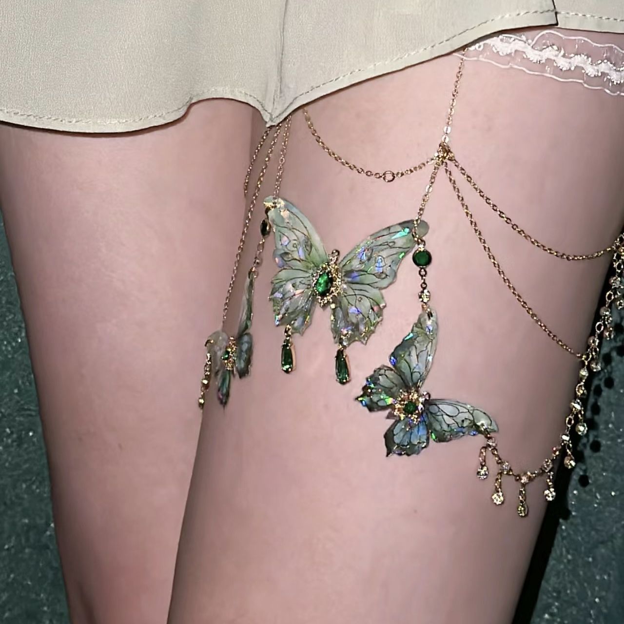 チェーンの緑のギャルの欧米のセクシーな装飾の足の超仙の体のチェーンの女性の流蘇の復古の太ももの装飾品の蝶