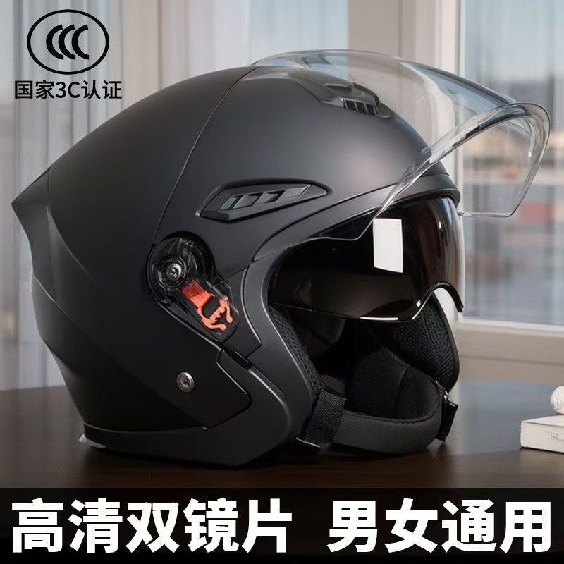 半ヘルメット国標双鏡3C認証女性オートバイヘルメット電気自動車ヘルメット男保温四季通用冬