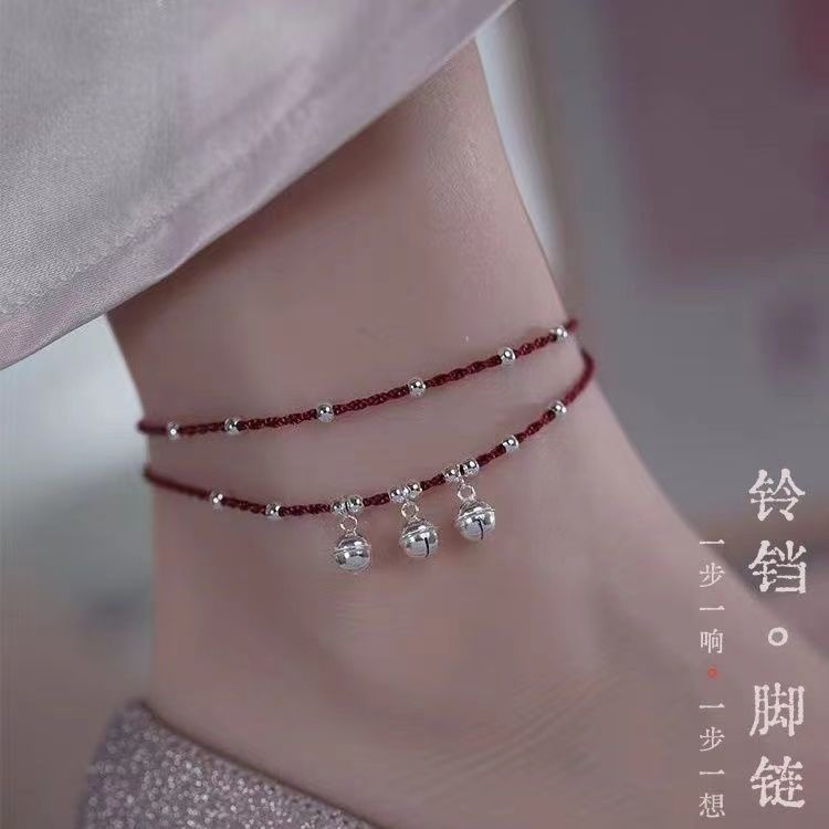 転送の簡単な親友のプレゼントの赤い縄は鈴の足のチェーンの女性insを編みます。