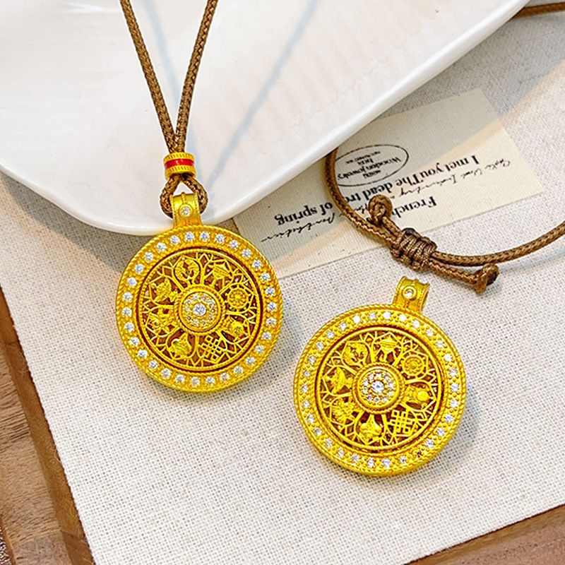 レトロ中国式デザインネックレス古法黄金回転時に運転色八宝毛衣チェーンペンダントコンパス気質