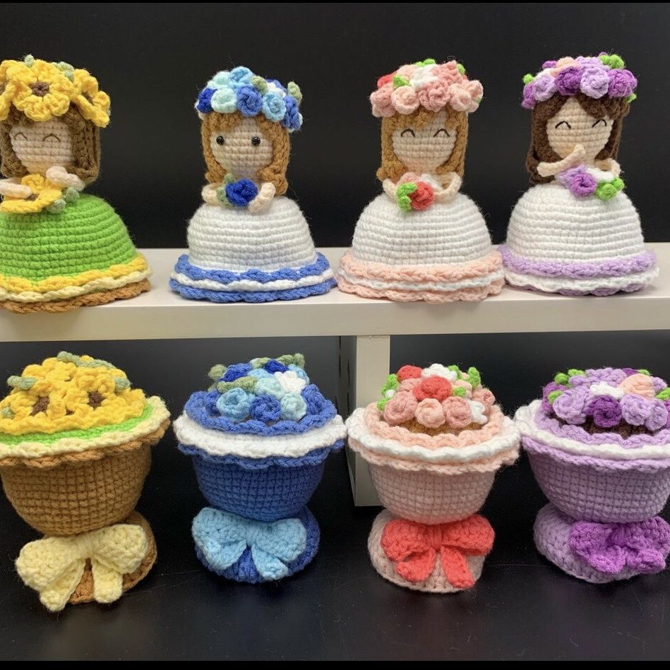 手作り diy 女装ガールフレンドギフト花嫁かぎ針編みウールブーケ変身ウェディングドレス人形素材パッケージ