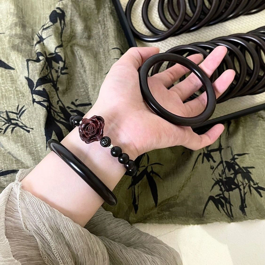 ガールズナチュラルローズブレスレットサンダルウッドブレスレットレトロギフトジュエリーブレスレット中国オリジナルブレスレットブラック