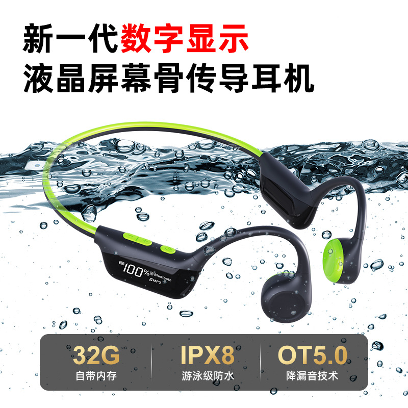 LEDデジタルディスプレイ搭載、長時間バッテリーで音楽を聴く、スポーツや水泳に最適なBluetooth骨伝導イヤホン(クロスボーダーx7s)