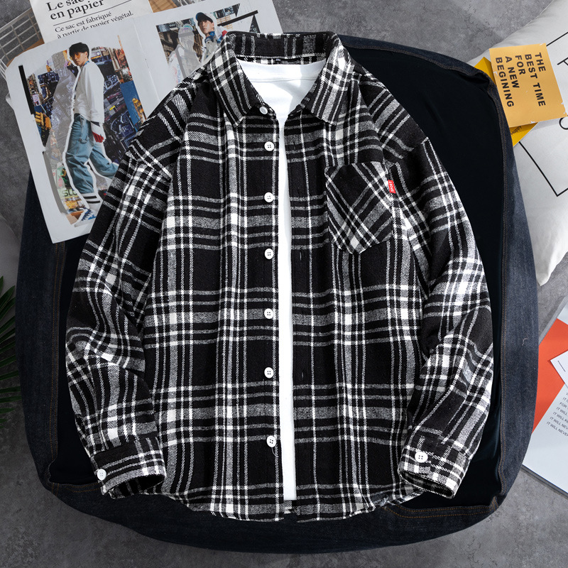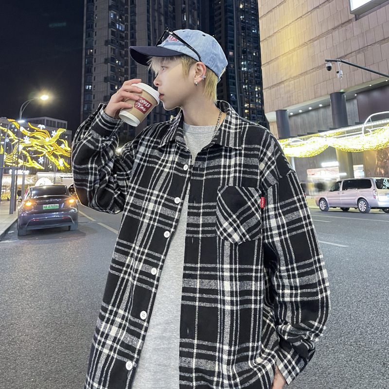 9xl潮牌の大きいサイズのシャツ春秋の新型の青少年のゆったりしているファッションの格子のシャツの薄い長袖のシャツの男性