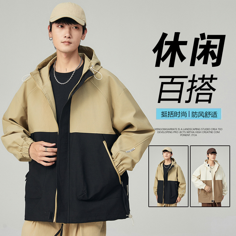 8xlビッグサイズ2023秋タイプの帽子付きジャケット春秋タイプのファッションブランドの青少年は格好いいです。