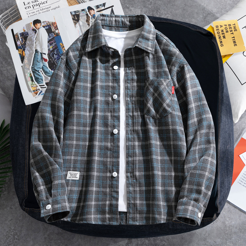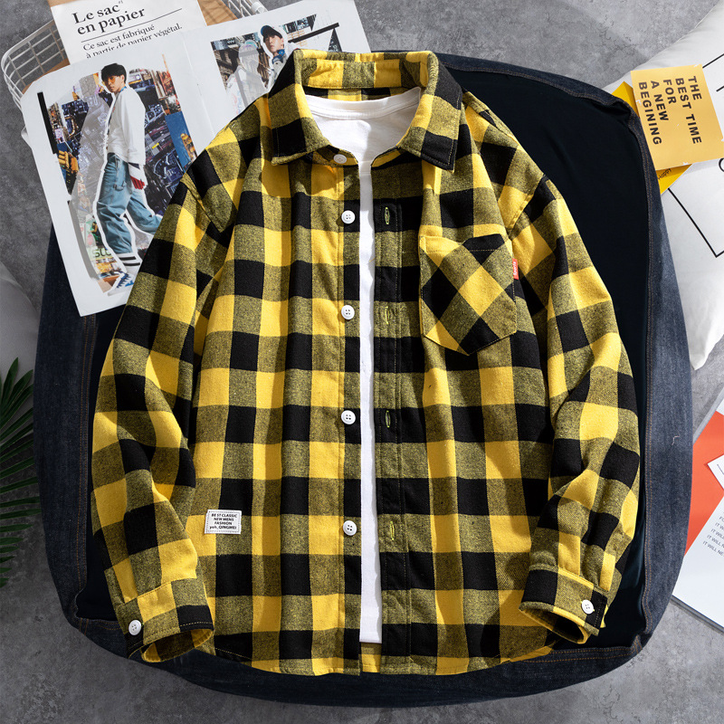 9xl潮牌大サイズシャツ青少年ゆるいファッション格子シャツ薄い長袖シャツ男性襟ボタン