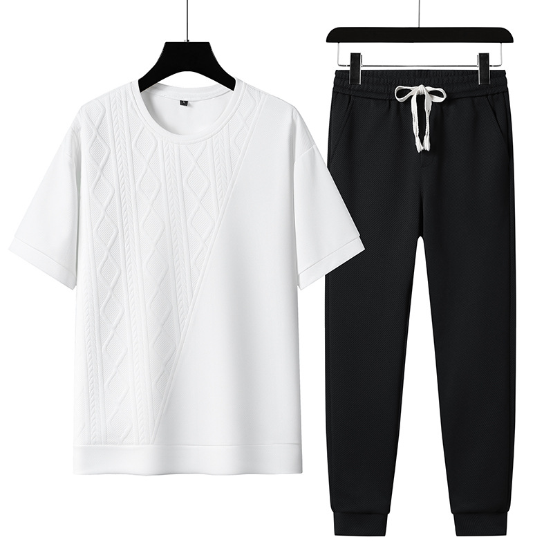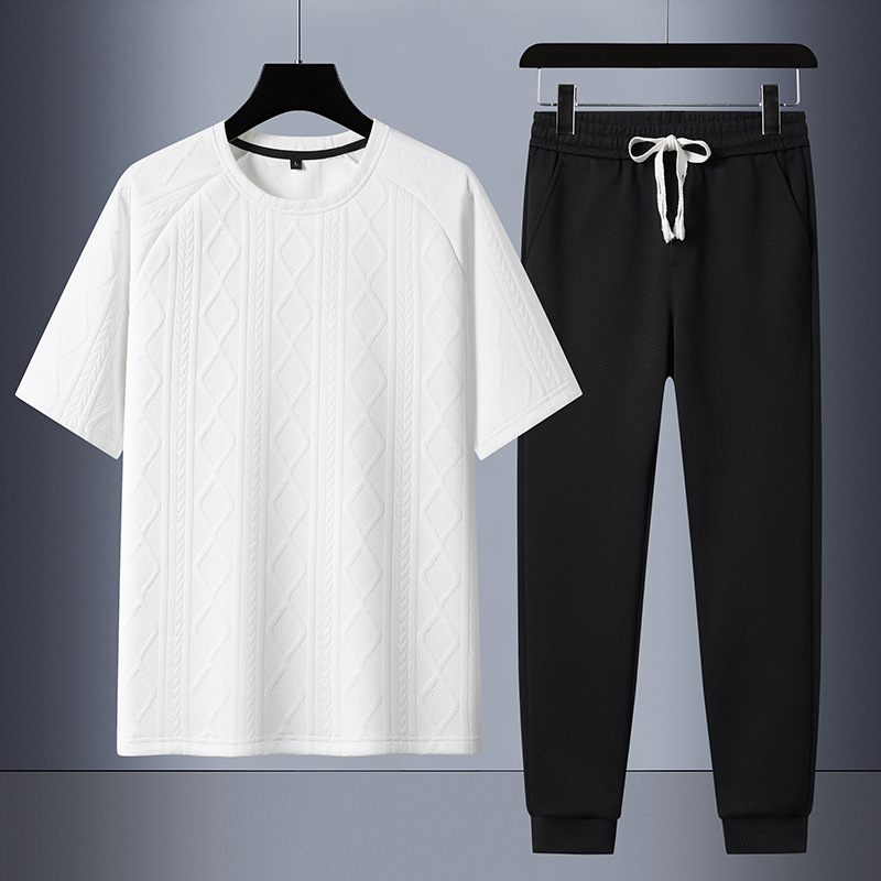 7xl公版大きいサイズ夏アイス半袖tシャツセットスポーツウェアカジュアルスーツメンズゆるい半袖tシャツ