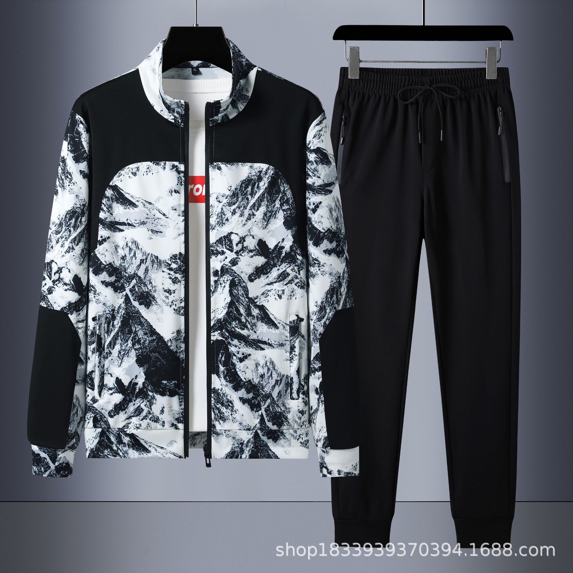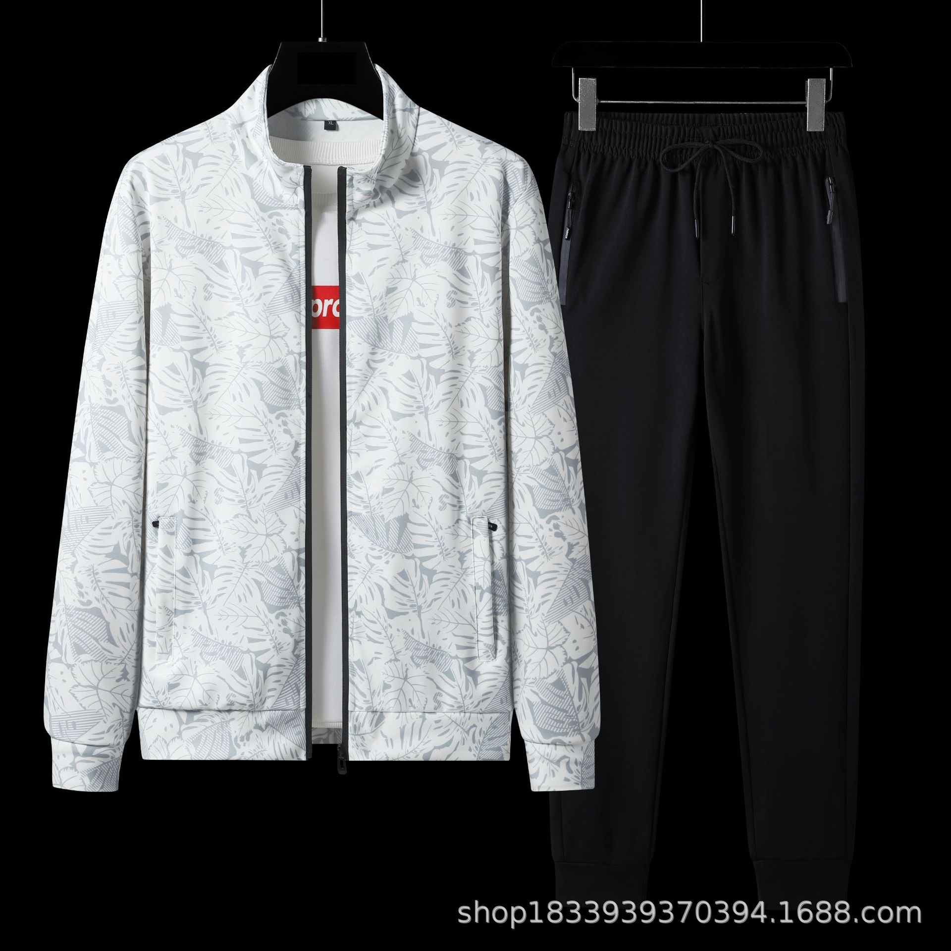 7xl大きいサイズ春秋2点セット青年スポーツスーツ男性カジュアルゆるいスポーツウェア大きいサイズカーディガン長袖