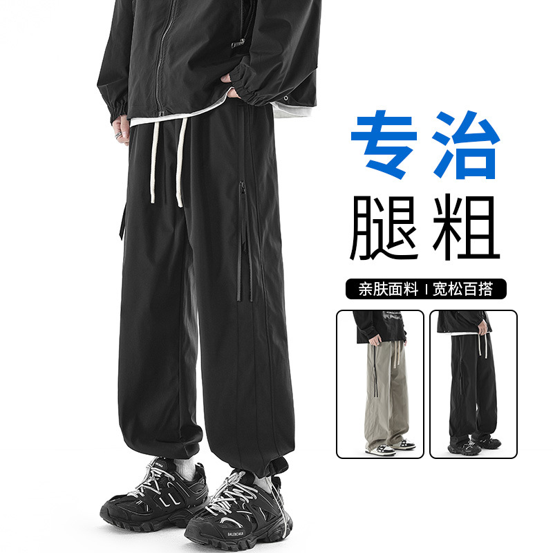 男性の春と秋の薄いカジュアルなズボンの春と秋の男性の突撃ズボンの機能の大きいサイズの足の束