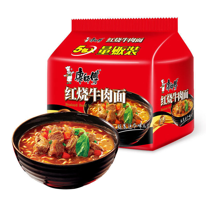康師傅の経典の赤焼の牛肉の麺の5袋のインスタントラーメンの便利な食品