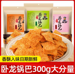 臥龍手工老かまど鍋巴300g袋入り五香味麻辣赤網紅間食レジャー食品軽食大ギフトバッグ
