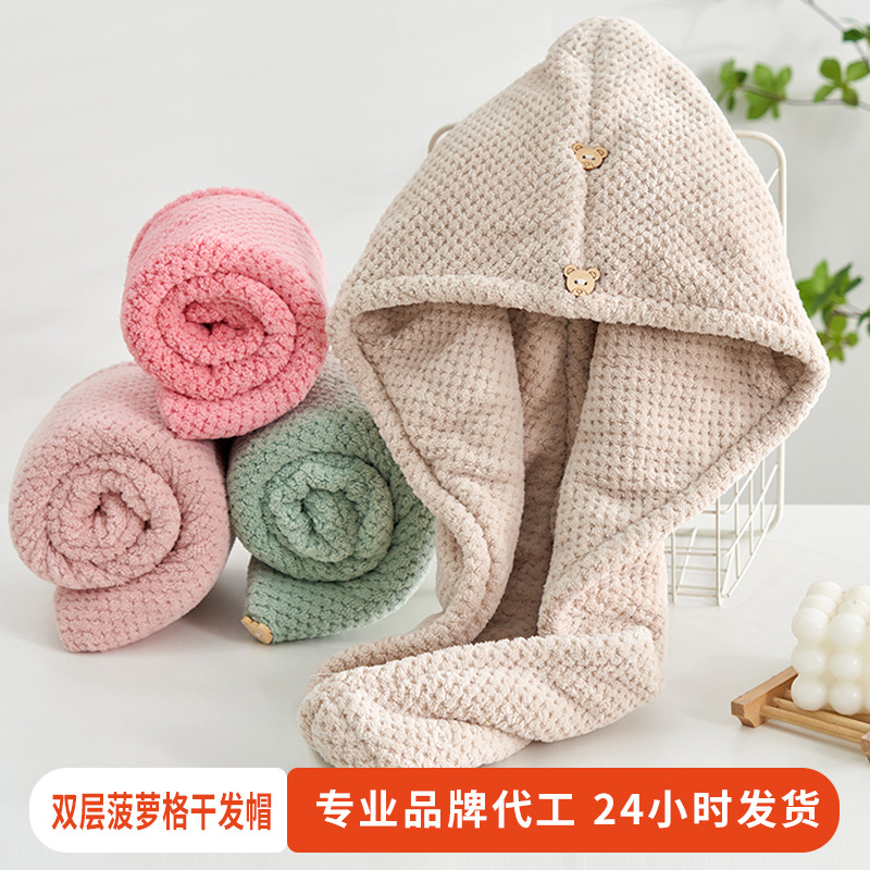 珊瑚の絨毯の二層のパイナップルの格の乾燥している髪の帽子の卸売りの女性のかわいい吸水の厚い包みのスカーフのシャワーの帽子の乾燥している髪の帽子は代行します。
