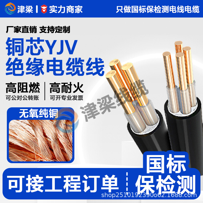 源工場製難燃性YJVケーブル線3/4/5芯4/6/10平方電線国家規格銅芯コンセント電源線