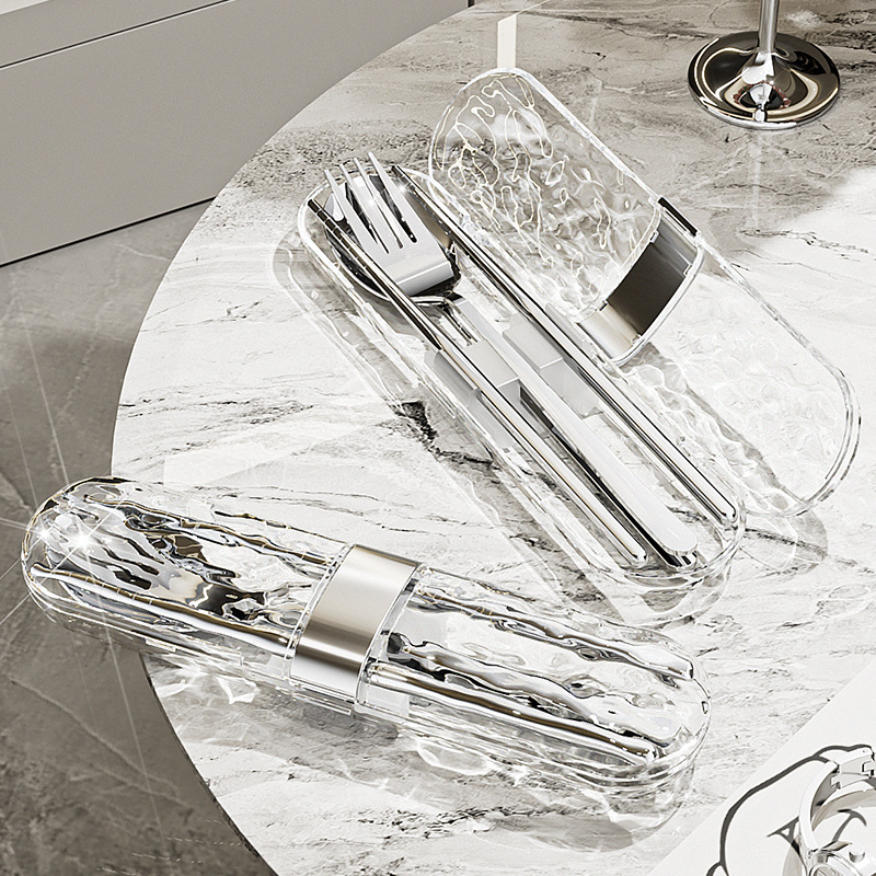 1688ウォーターリップルポータブル食器セット、箸、フォーク、スプーン、高価値の食器、旅行や出張に不可欠な食器収納