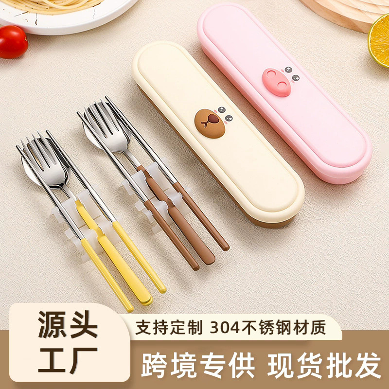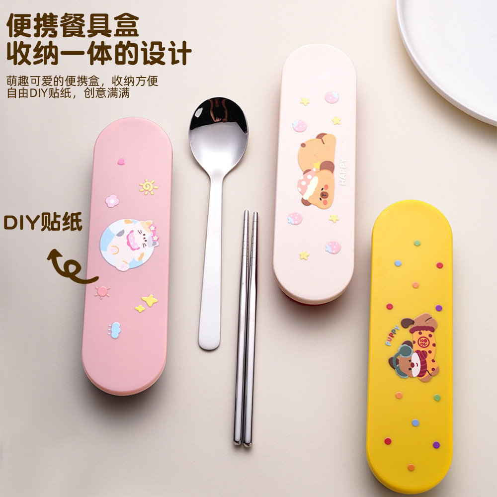 1688クリエイティブステンレス食器3点セットabs食器箱スプーン箸便利シングルギフトセットプライベートロゴ