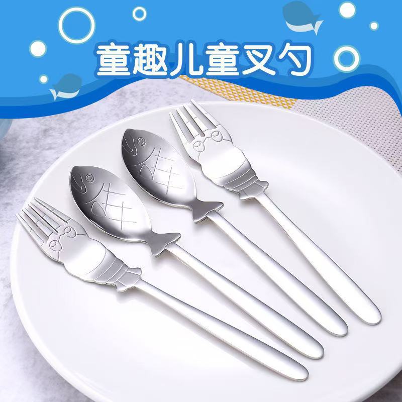 1688メーカー卸売りステンレススプーンフォーク海老304児童スープスプーン海老304スプーンフォーク児童家庭用