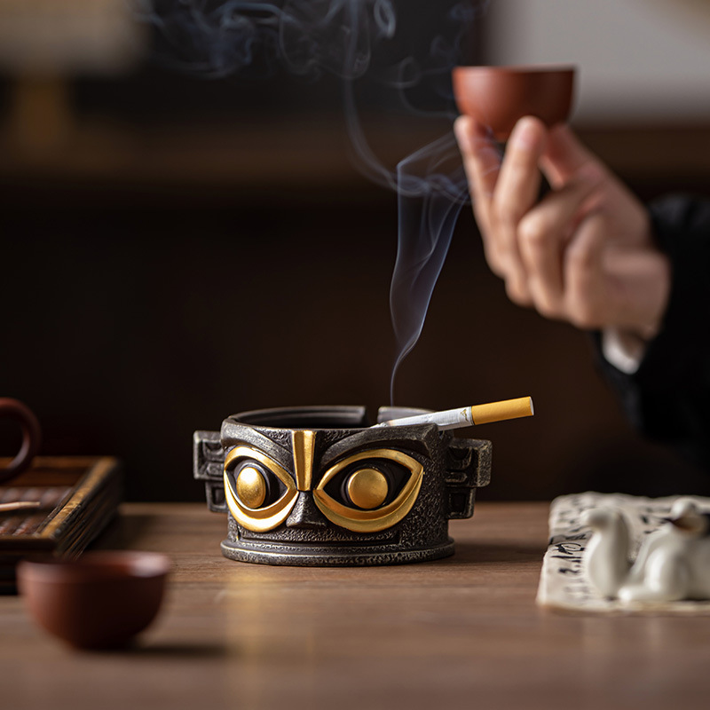 サムスンの山の国の潮の陶磁器の文は灰皿の家庭の室内の飛ぶ煙の杯の復古のアイデアのマスクのデスクトップの置物を作ります。
