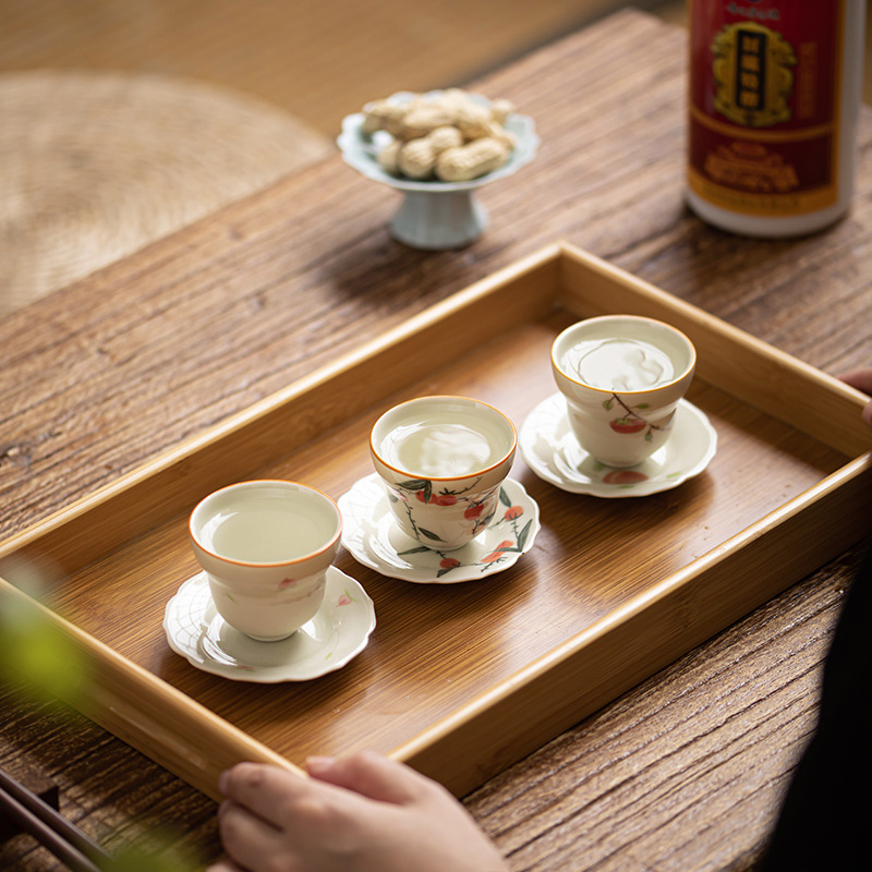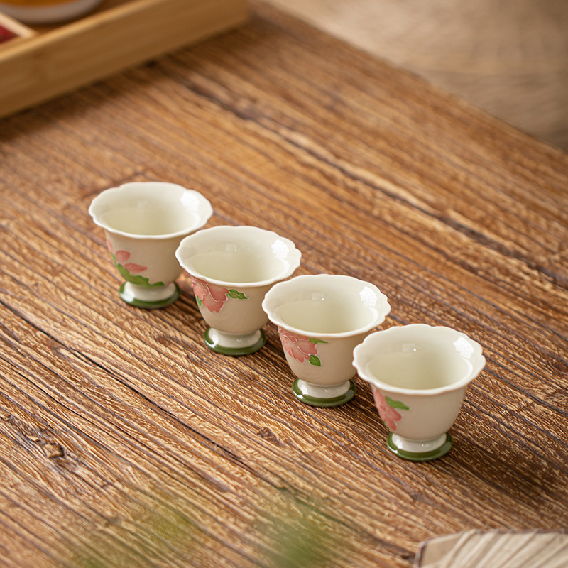 釉薬下彩手描き柿如意模造古草木灰陶磁器女性花茶品茗杯家庭用個人白杯