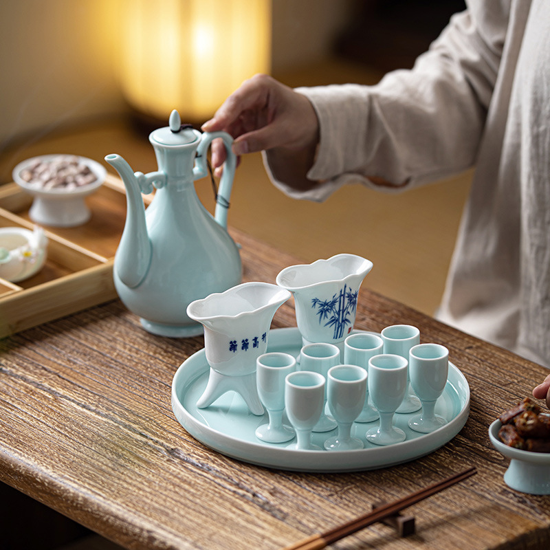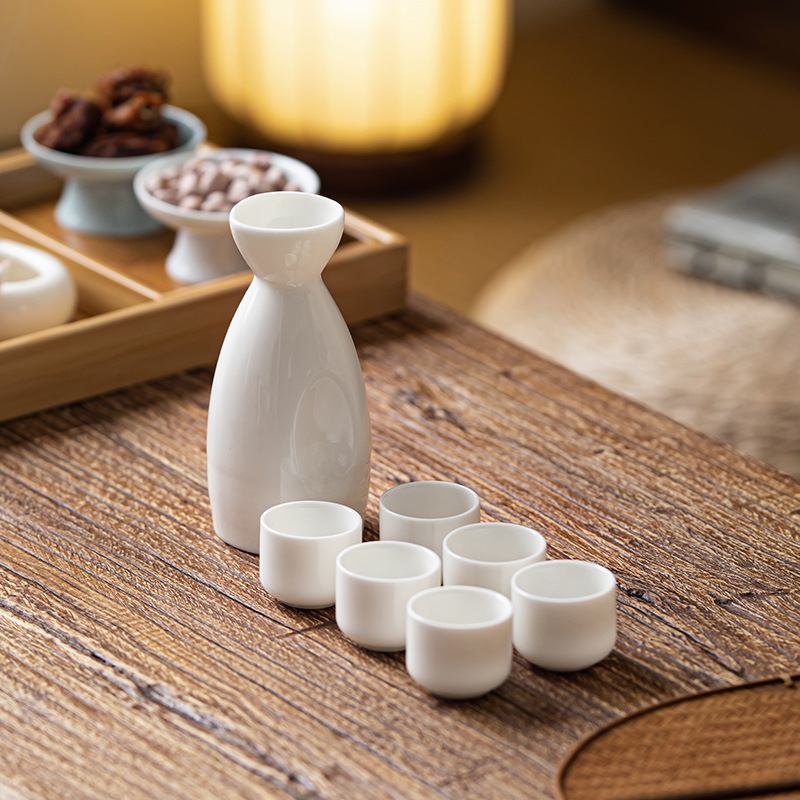 羊脂玉陶磁器清酒分酒器模造古白杯烈杯中国式家庭用酒器セット酒杯杯杯