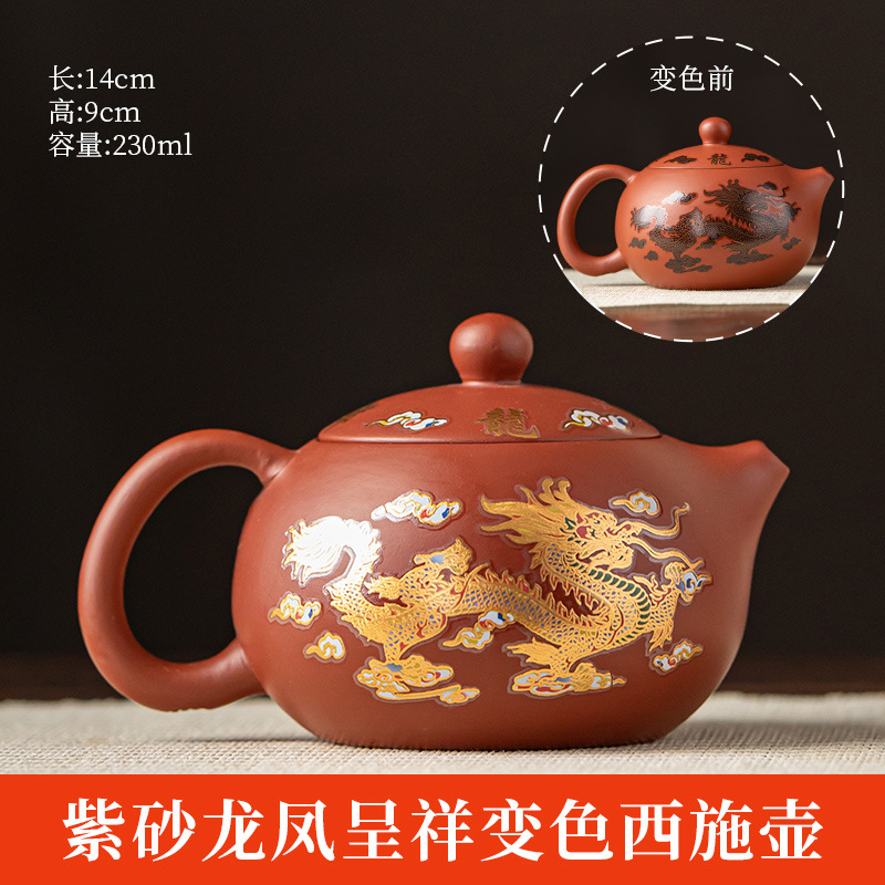熱に応じて変色した竜鳳紫砂壺の純半手作りのティーポットは自分で使ってもいいです。