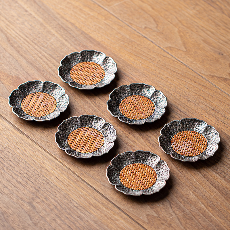 ラウンド中国式合金竹编み断热コースタークリエイティブ手作りワイングラスマット茶室ティーカップカンフーティーアクセサリー