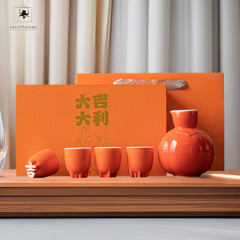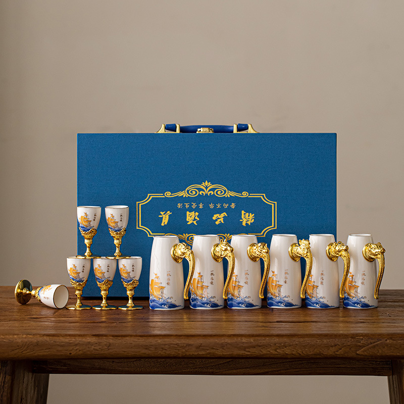 創意陶磁器金箔酒具礼箱セット白酒分酒器家庭用一口杯中国式分酒壺烈酒杯